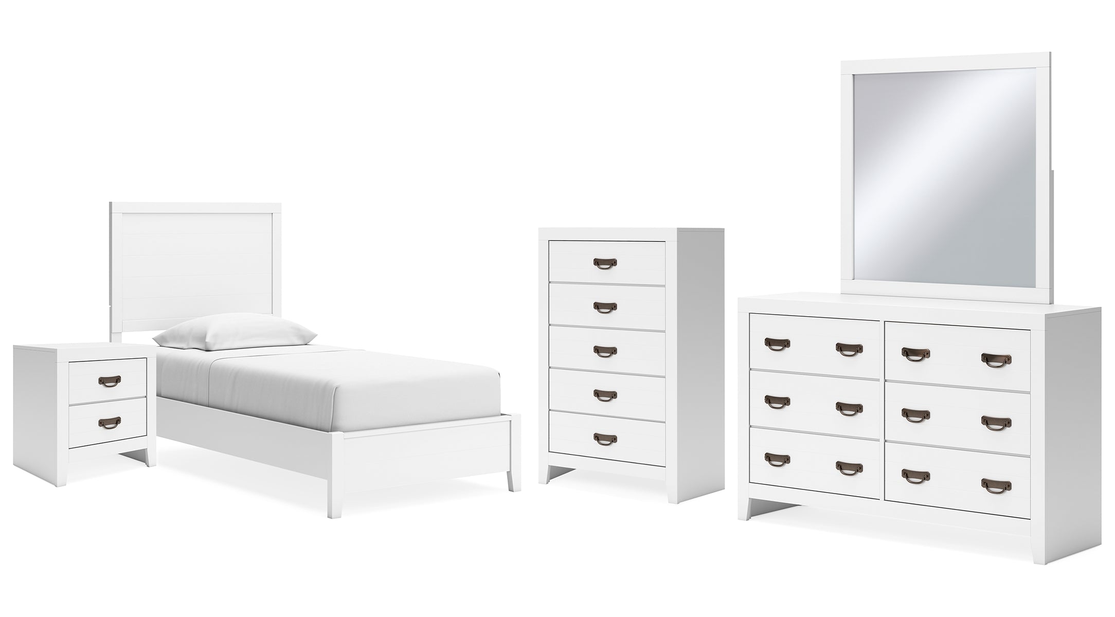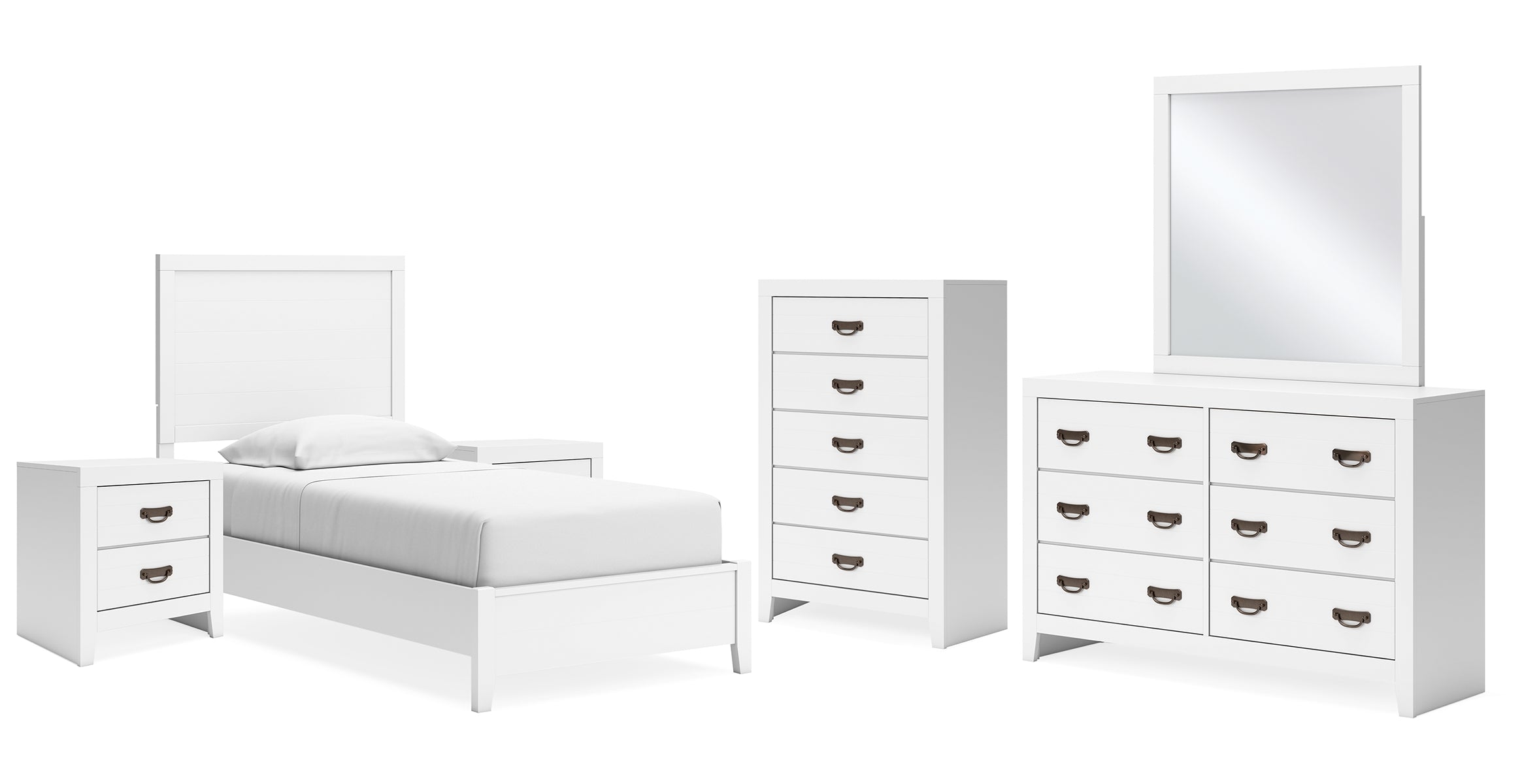 Altyra Panel Headboard Bed with Mirrored Dresser, Chest and 2 Nightstands