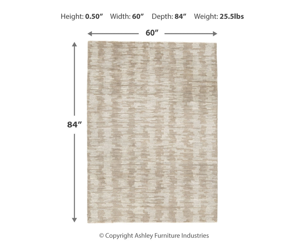 The hand-tufted modern design of this area rug will make a bold statement in any room. By alternating the pattern flow, the weavers have created a work of art alive with texture. Shades of cream and brown are blended to produce an abstract-yet-tranquil feel underfoot.