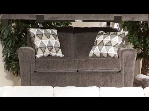 If you’re looking for a smokin’ hot look priced to entice, you’re sure to find this space-conscious, budget-conscious loveseat beautifully fits the bill. Covered in a smoke gray chenille upholstery loaded with plush texture, this less-is-more contemporary loveseat is dressed to impress with angled side profiling and track armrests wrapped with a layer of pillowy softness for that little something extra. Crisp and clean, the 2-over-2 cushion styling adds up to one sensational look.