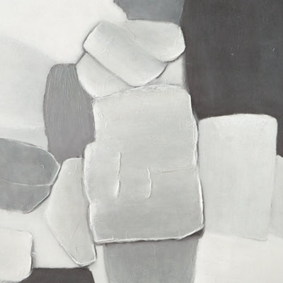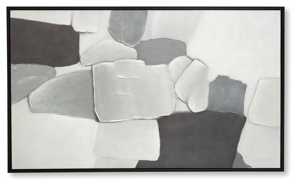 Handsomely made, this wall art takes an abstract approach to contemporary stylings. Its neutral hues make a solo statement or act as a grounding centerpiece to a gallery wall—perfect for pairing alongside muted tones or vibrant colors alike. Hand-painted embellishments and a sleek black frame provide added refinement.