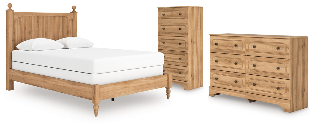 Country rustic. Vintage inspired. However you see it, you’re sure to be charmed by this bedroom package. Adorned with chic drawer knobs and a warm oak grain finish, it offers a relaxed mix of picturesque aesthetics. With an air of easygoing elegance, this set lets you drift away to a simpler time and place.