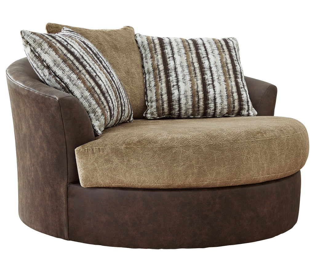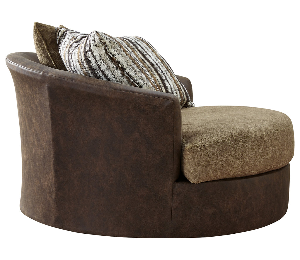 This oversized swivel accent chair is perfect for those who love the look of leather. Two textural tones provide twice the style and comfort—and incorporate an added layer of visual interest. By allowing you to swivel, this chair marries the best of form and function.