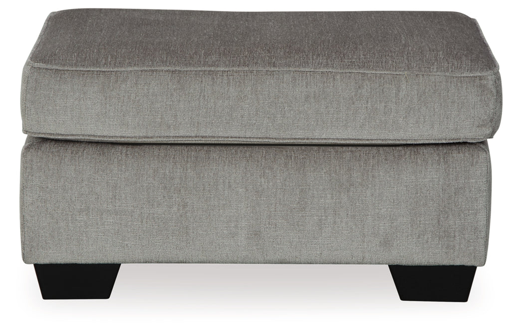If style is the question, then this ottoman is the answer. Its decidedly contemporary profile is enhanced with plump cushioning and a chenille-feel upholstery that's so pleasing to the touch. Rest assured, this ottoman in slate gray is sure to play well with so many color schemes.