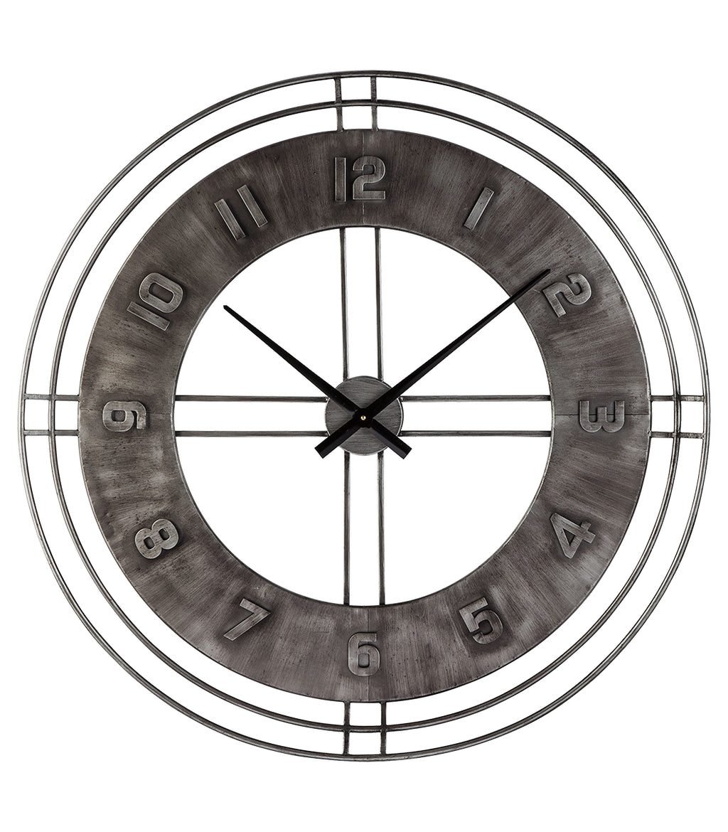 Merging an antiqued gray finish with a minimalist chic open design, this wall clock offers a timeless sense of style that can suit vintage-inspired and contemporary spaces equally well. Raised numbers give a simply striking look added dimension.
