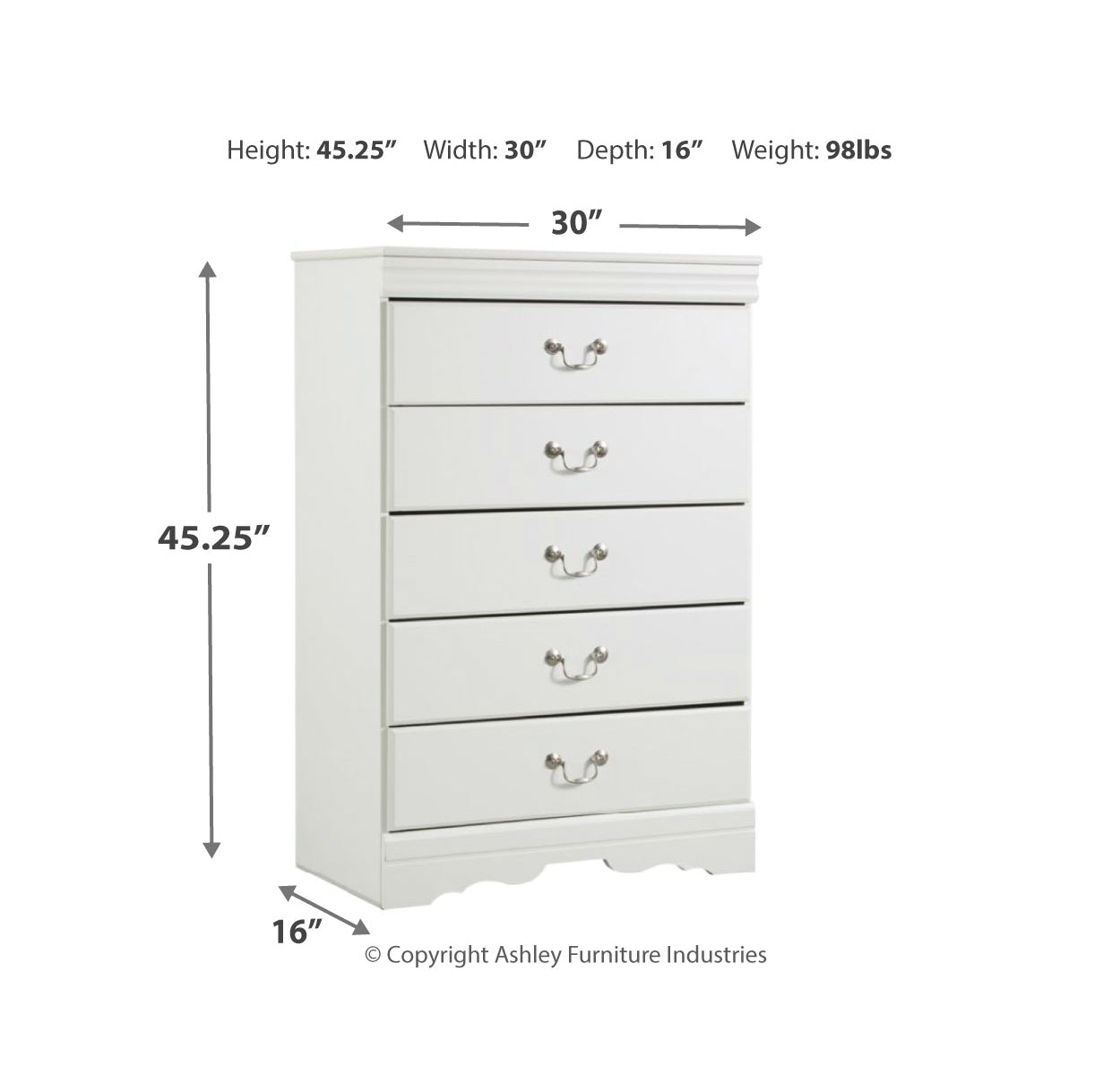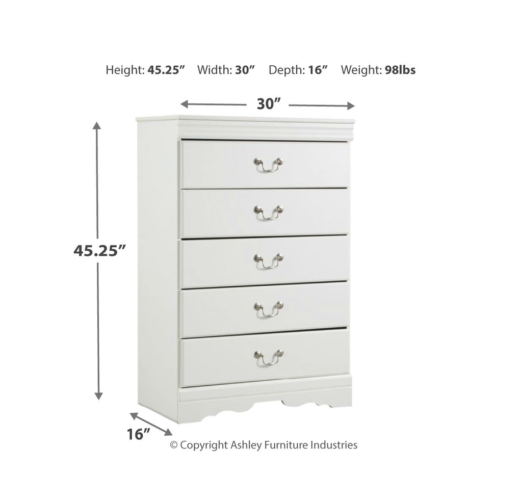 • Includes sleigh bed (with headboard, footboard and rails), dresser, mirror and chest