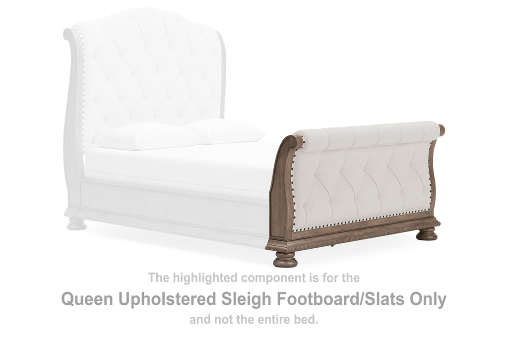 Features- Includes upholstered sleigh headboard, upholstered sleigh footboard, sleigh rails and slats