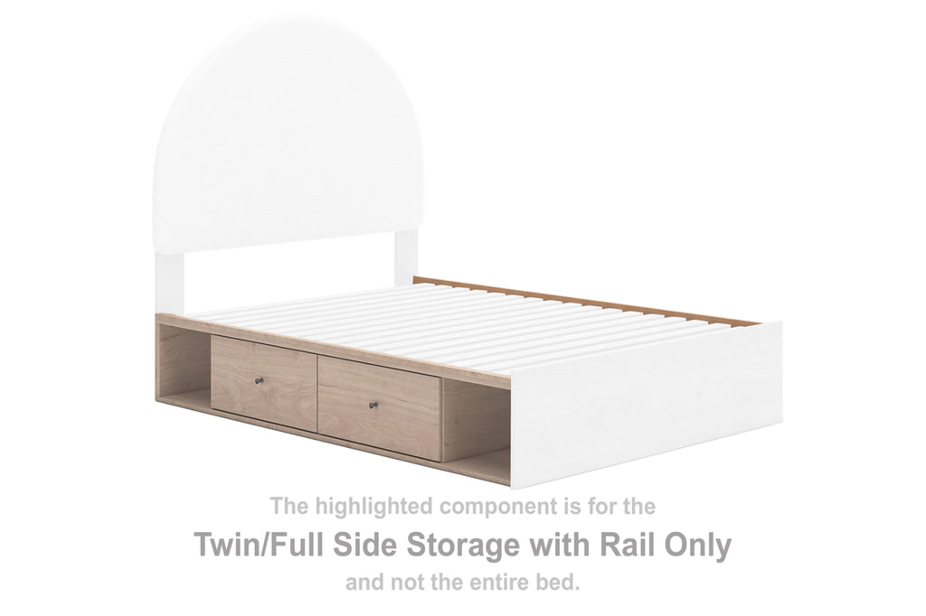 Features- Includes upholstered panel headboard, panel footboard, roll slats and side storage unit with rail