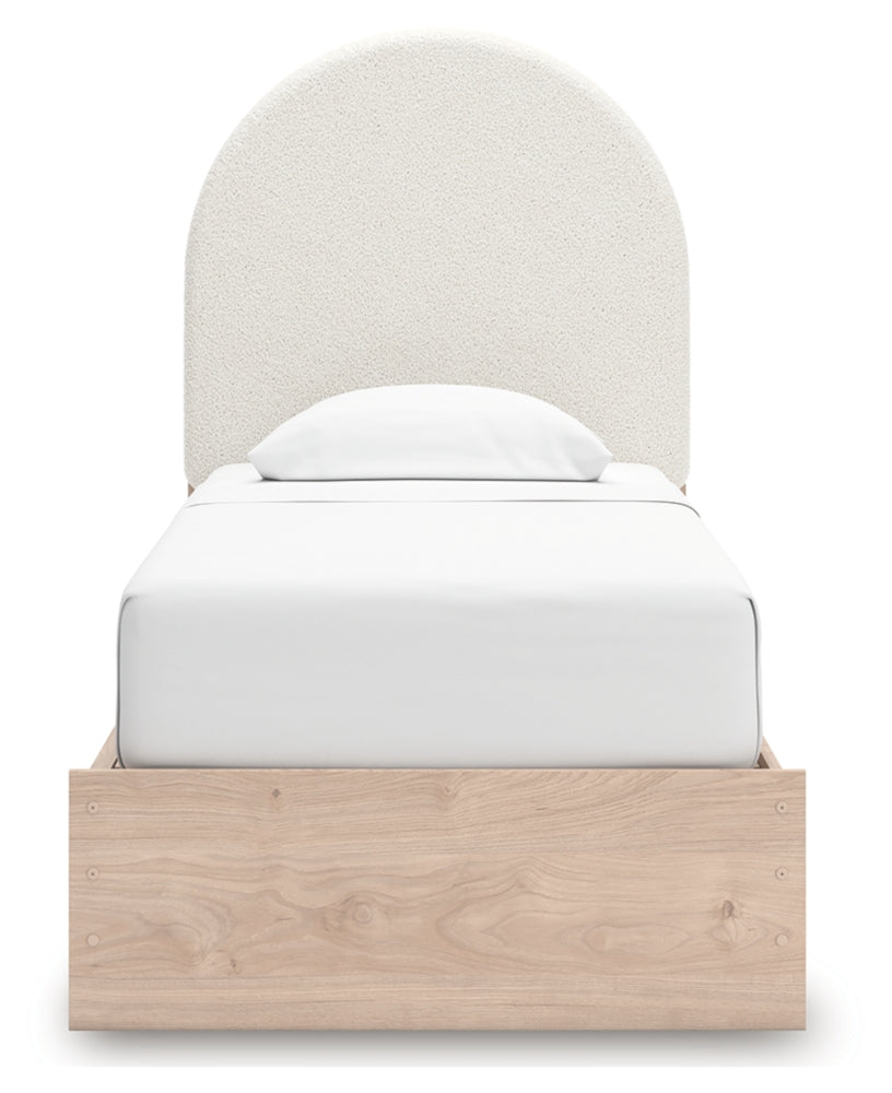 Looking for a full storage bed that's both playful and practical for your little one? This piece is just the ticket. Its charming organic shaping and light upholstery create a whimsical and inviting look that whispers “sweet dreams.” Spacious drawers underneath provide plenty of storage, so there’s no need for a messy room.