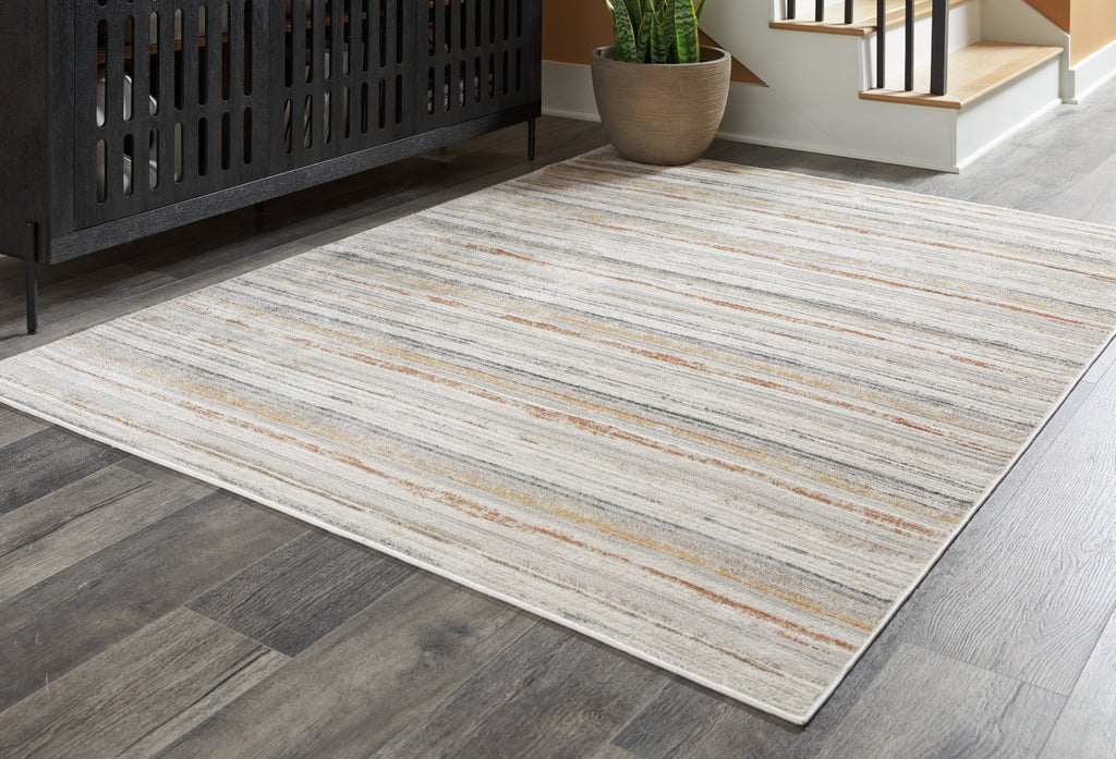 Ready. Set. Style. If you’re looking to freshen a room in a casually cool way, this striped area rug has you covered. Its neutral color palette exudes a relaxed vibe that works in any setting.