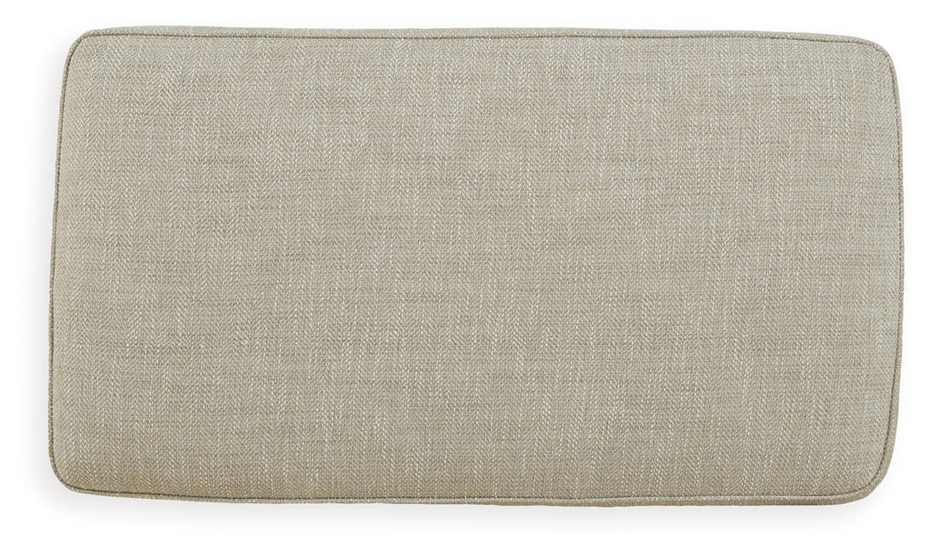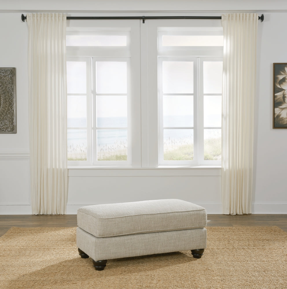 Blending comfort and style, this ottoman cradles your tired feet at the end of a long day. The distinctive look of heavily textured fabric in a light, neutral hue is enhanced by lighter flax peeking through. Whether paired with another piece or used on its own, this ottoman looks and feels right at home.