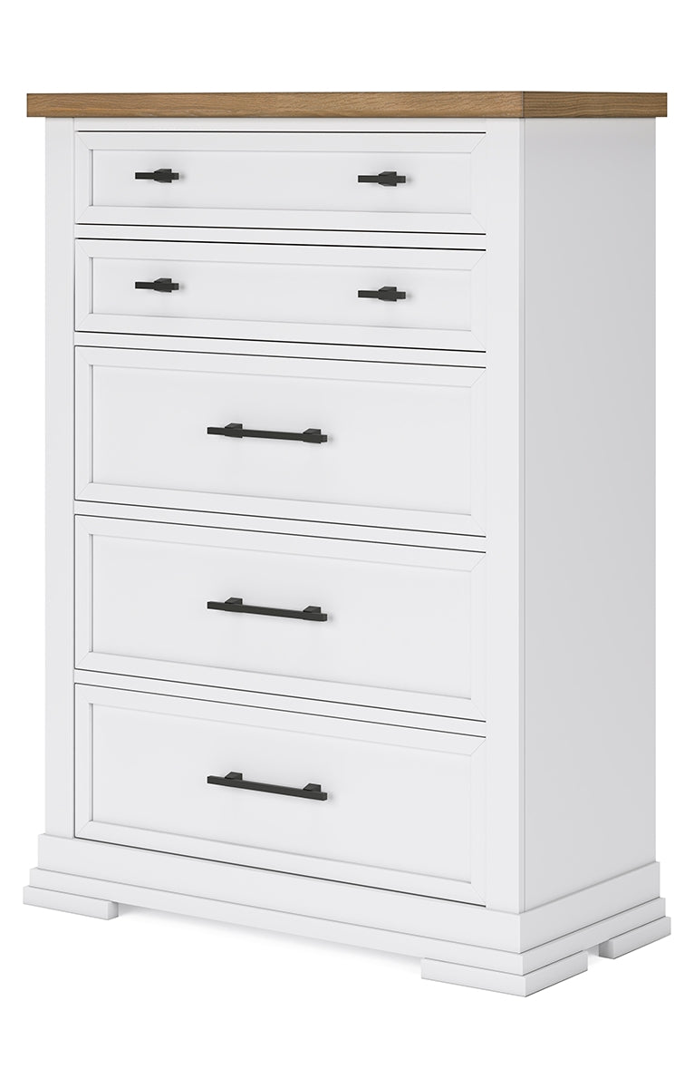 • Dresser with 2-tone finish (white finish; butcher block oak veneer with natural finish)