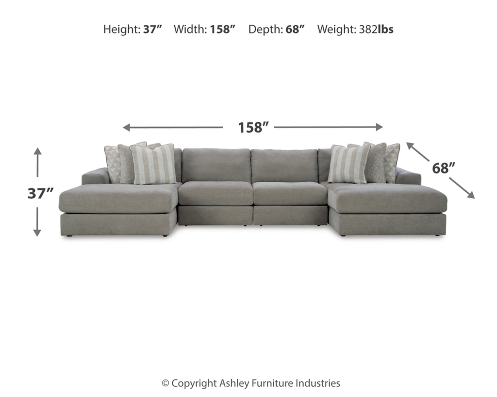 Features- Includes 4 modular pieces: left-arm facing corner chaise, right-arm facing corner chaise and 2 armless chairs