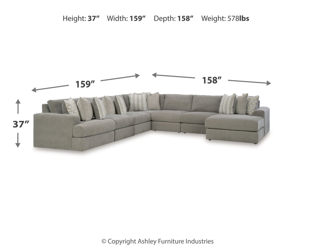 Features- Includes 6 modular pieces: left-arm facing corner chaise, 3 armless chairs, wedge and right-arm facing corner chair