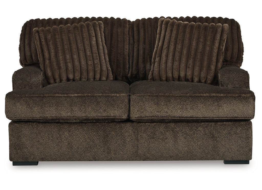If you’re looking for a blend of extraordinary comfort and contemporary style, this seating package stacks up beautifully. It's a modern yet soft look—made all the more appealing by plush, cozy cushions that feel as great as they look. The rich chocolate color is simply smart and practical. And pretty sweet.
