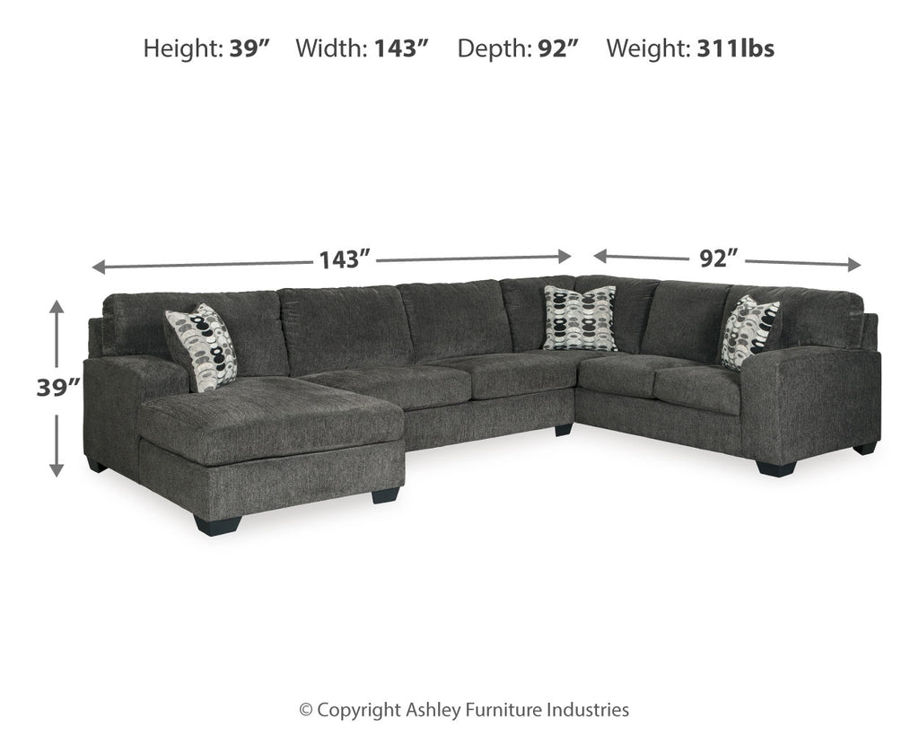 Features- Includes 3 pieces: left-arm facing corner chaise, armless loveseat and right-arm facing sofa
