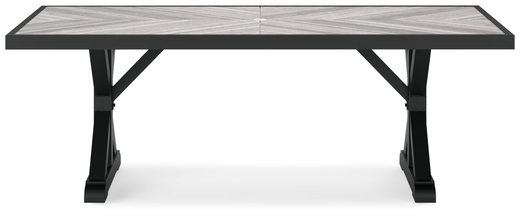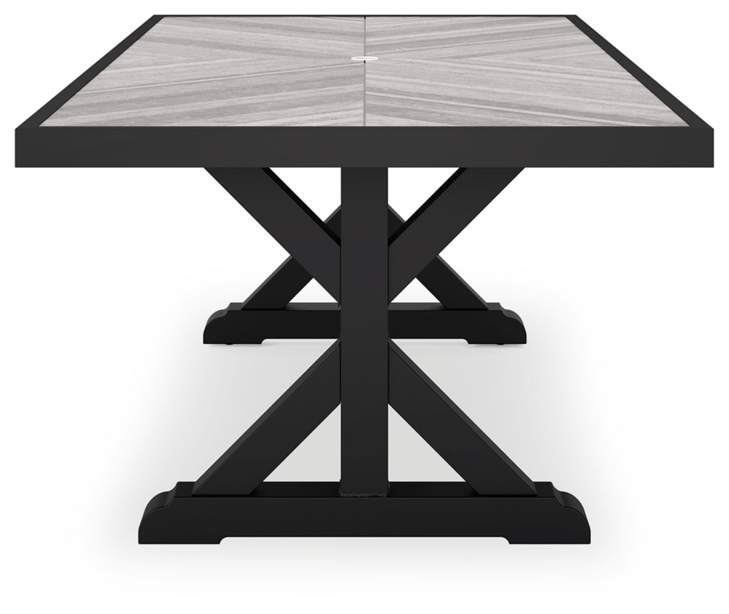 Sporting an easy-on-the-eyes look inspired by driftwood, this dining table elevates the art of alfresco living. Beautiful and durable enough for indoor and outdoor use, the high-style/low maintenance table charms with X-leg farmhouse styling, while its thick porcelain tabletop adds a natural complement.