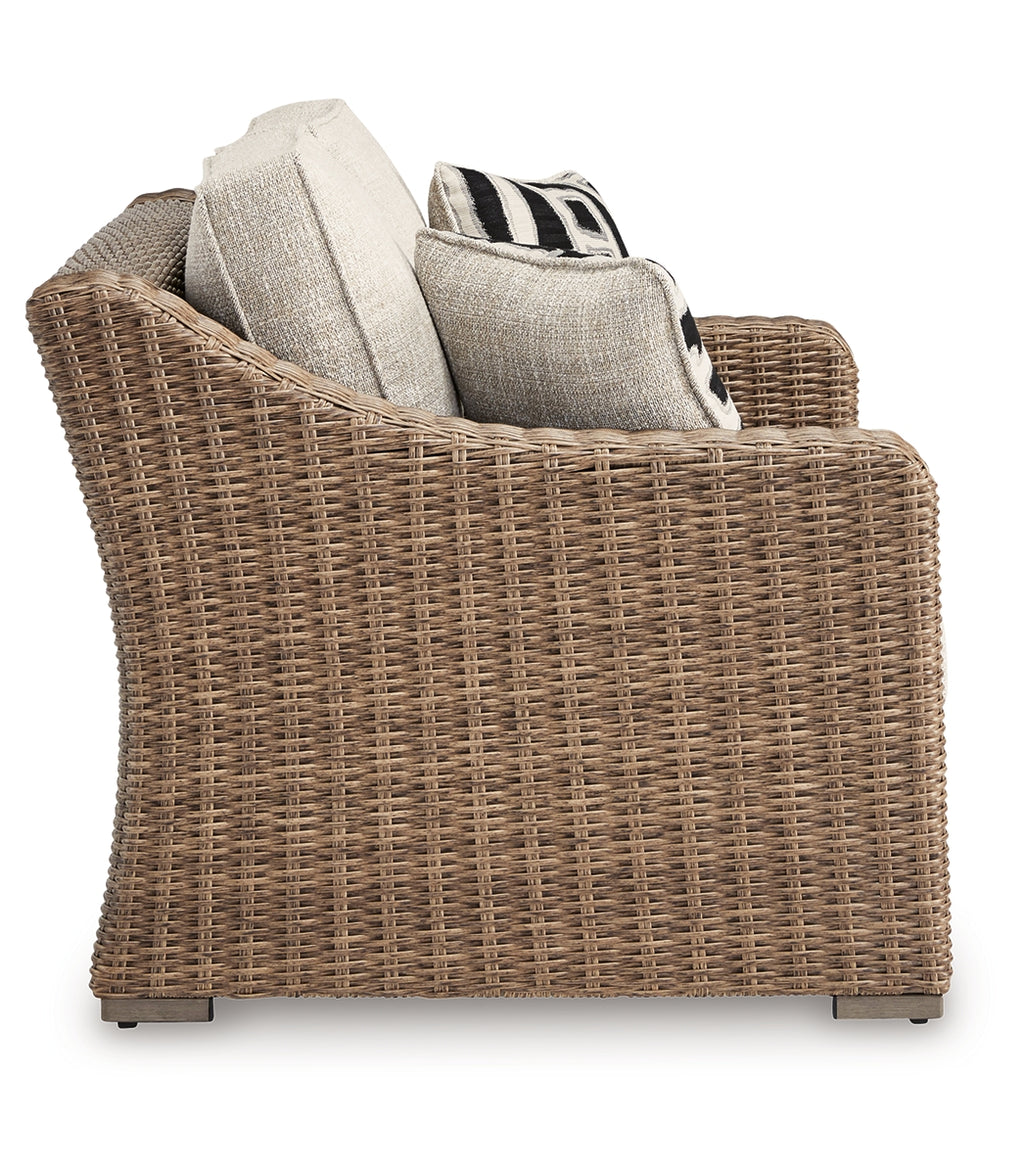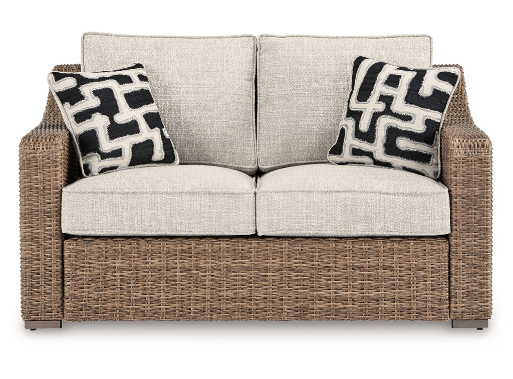 Sporting an easy-on-the-eyes look inspired by driftwood, this loveseat elevates the art of alfresco living. Beautiful and durable enough for indoor and outdoor use, the high-style/low-maintenance seating entices with plush removable cushions wrapped in Nuvella® fabric that’s a breeze to keep clean.