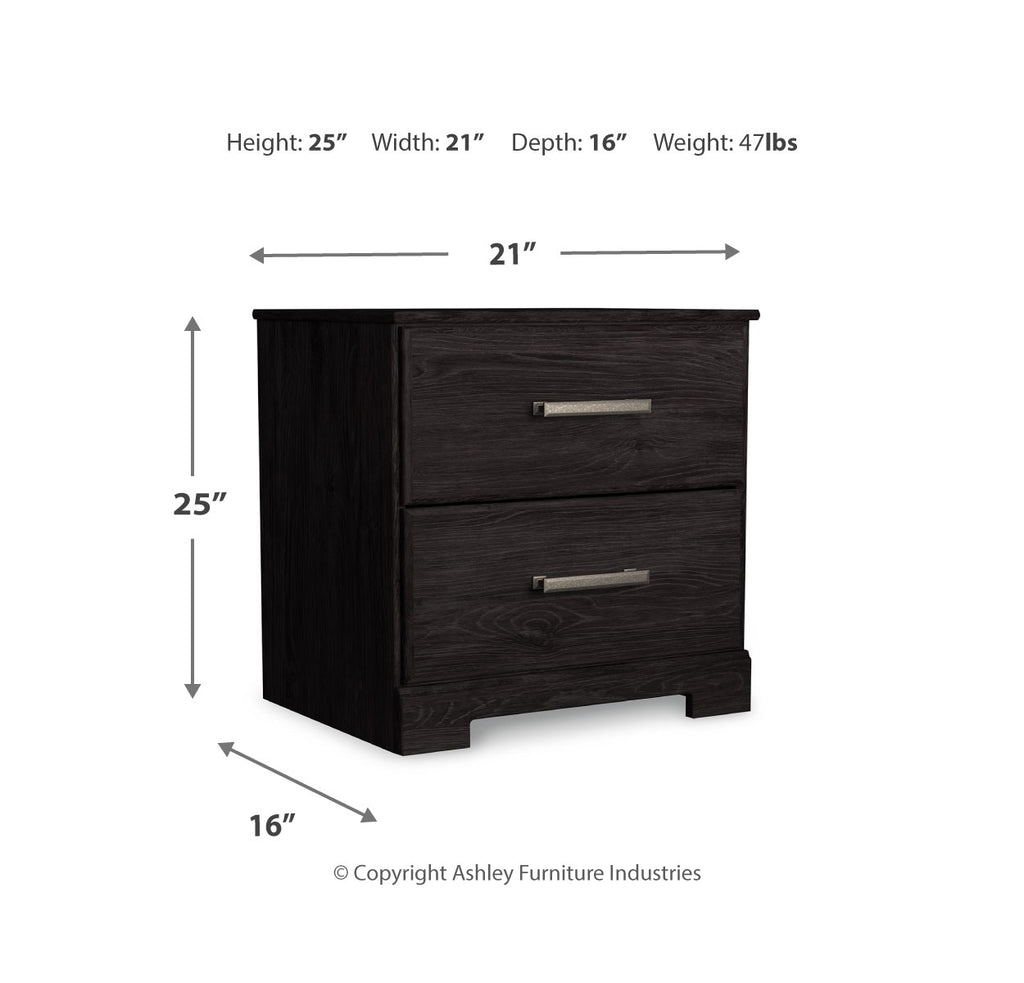 With its clean-lined look and modern attitude, this bedroom package is a fresh style awakening. A warm charcoal hue over replicated oak grain easily complements other furniture finishes. Smooth drawer fronts with antiqued pewter-tone handles complete the aesthetic.