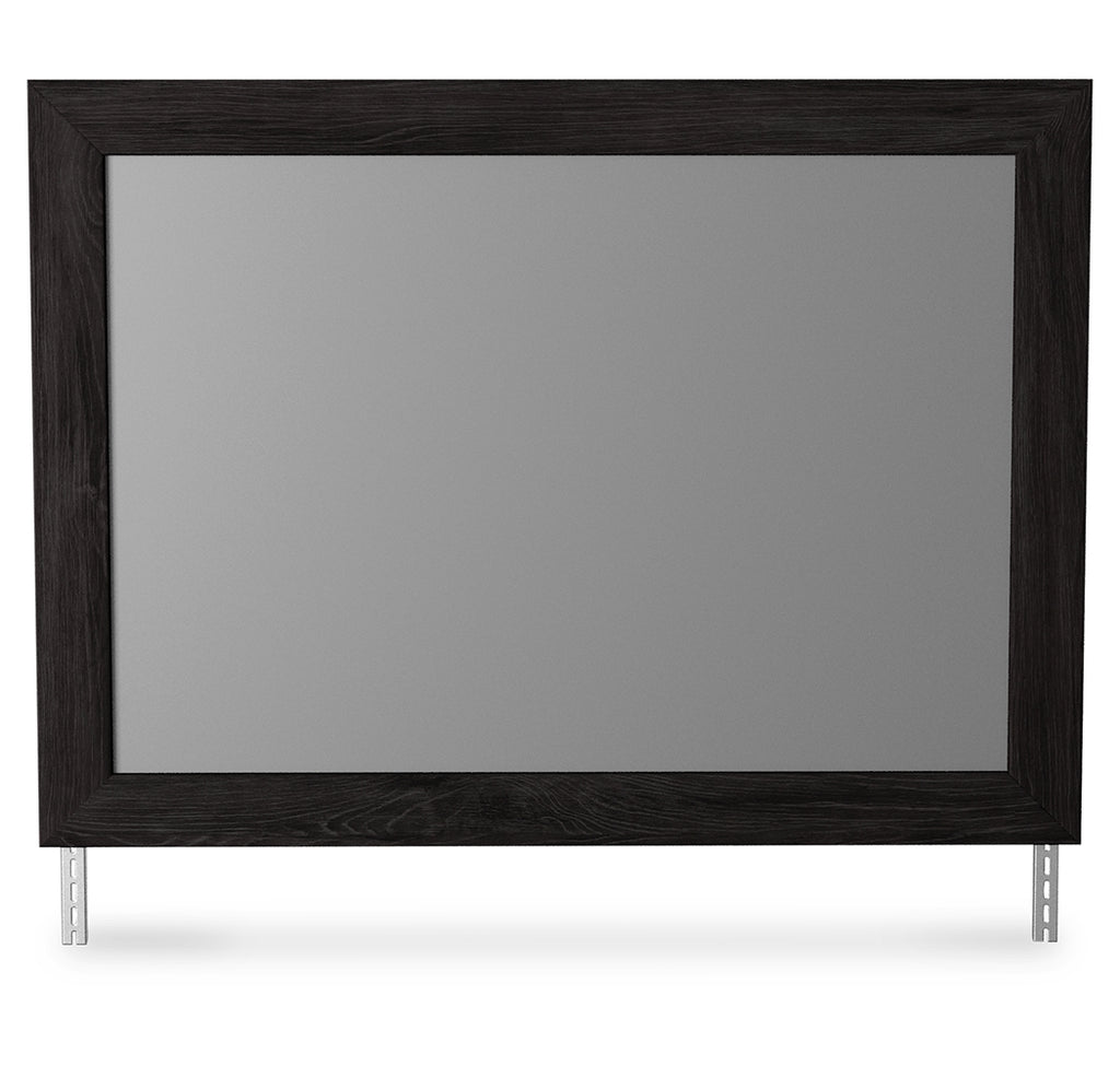 With its clean-lined look and modern attitude, this mirror is a fresh style awakening. A warm charcoal hue over replicated oak grain easily complements other furniture finishes. Whether hung vertically or horizontally, this alluring mirror is on the cutting edge of cool.