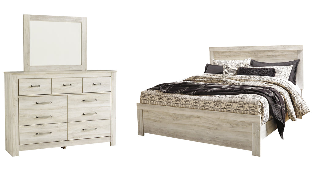 • Includes panel bed (headboard, footboard and rails) and 7-drawer dresser with mirror