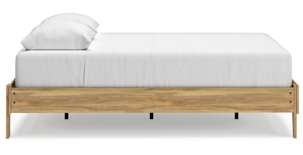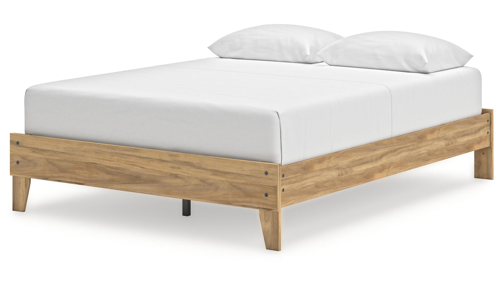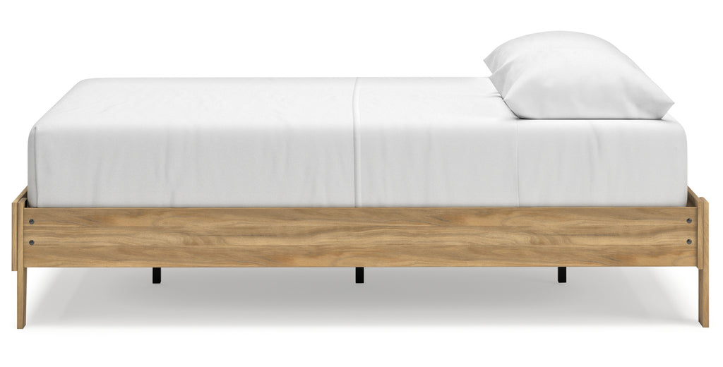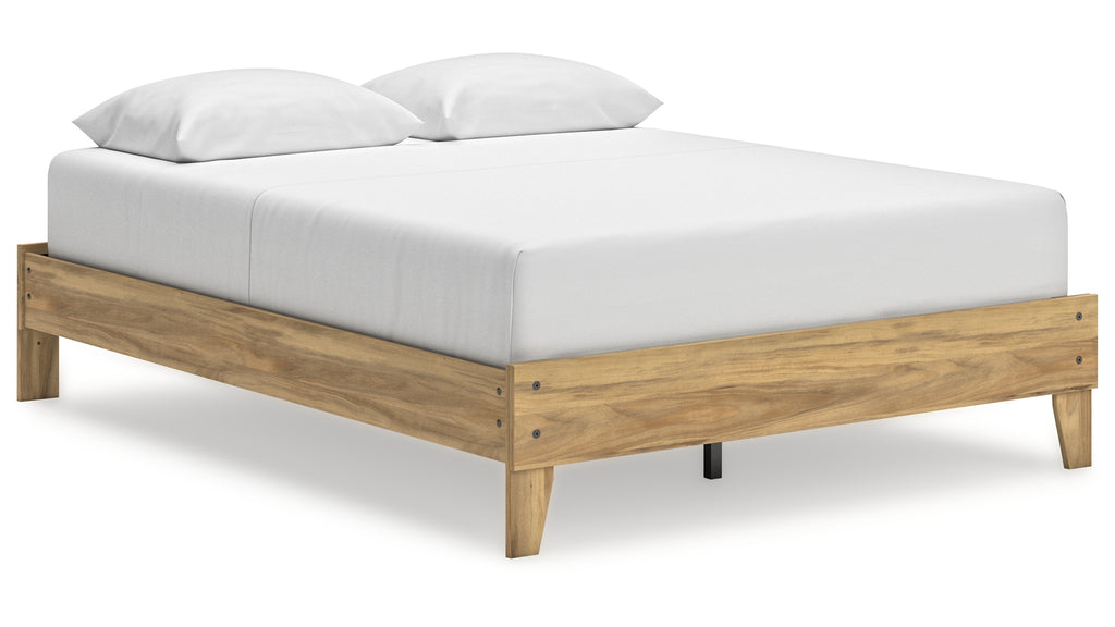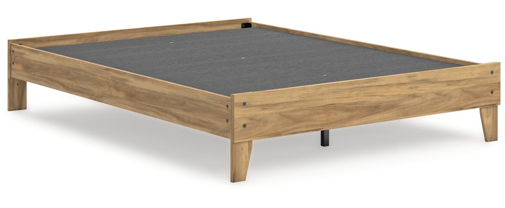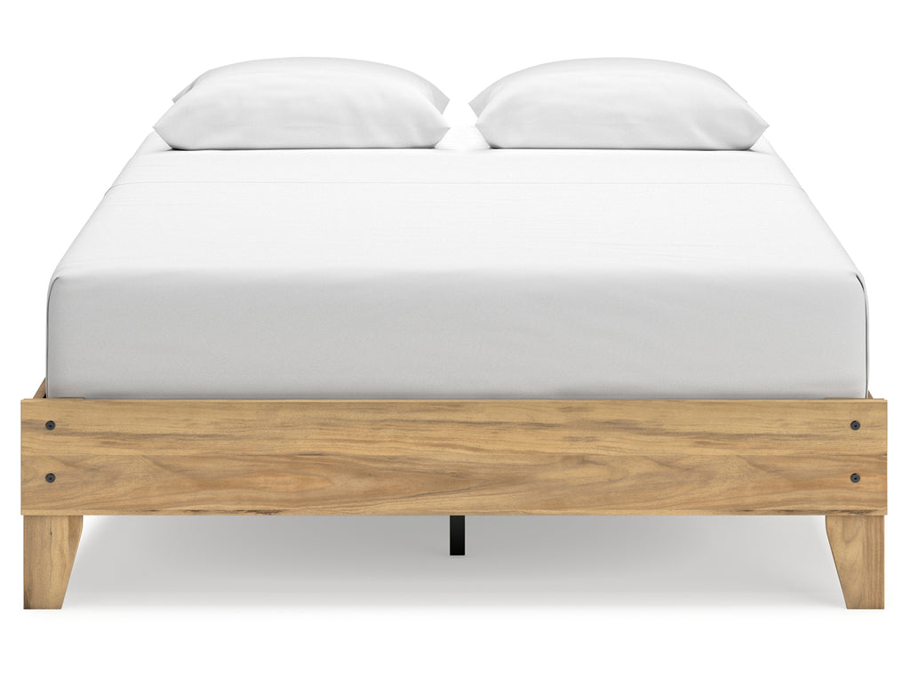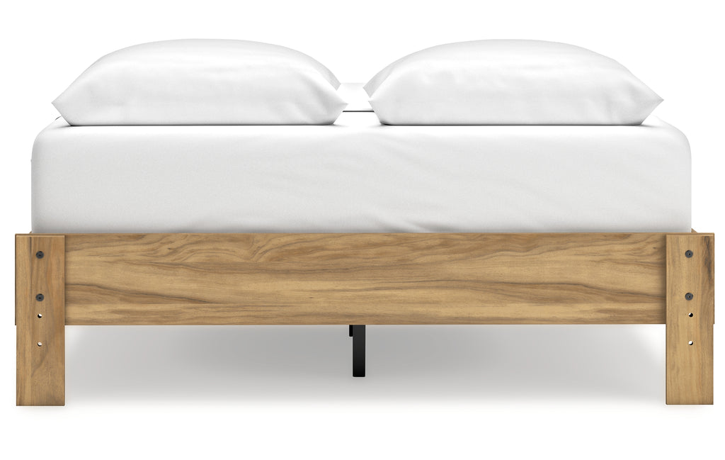 This queen platform bed puts the dream of a casual bedroom retreat beautifully within budget. A warm light brown finish over replicated hickory grain exudes a homey vibe. It’s a simply relaxed way to achieve the sanctuary of your dreams without needing a foundation or box spring.
