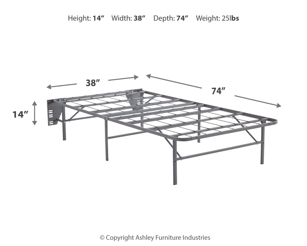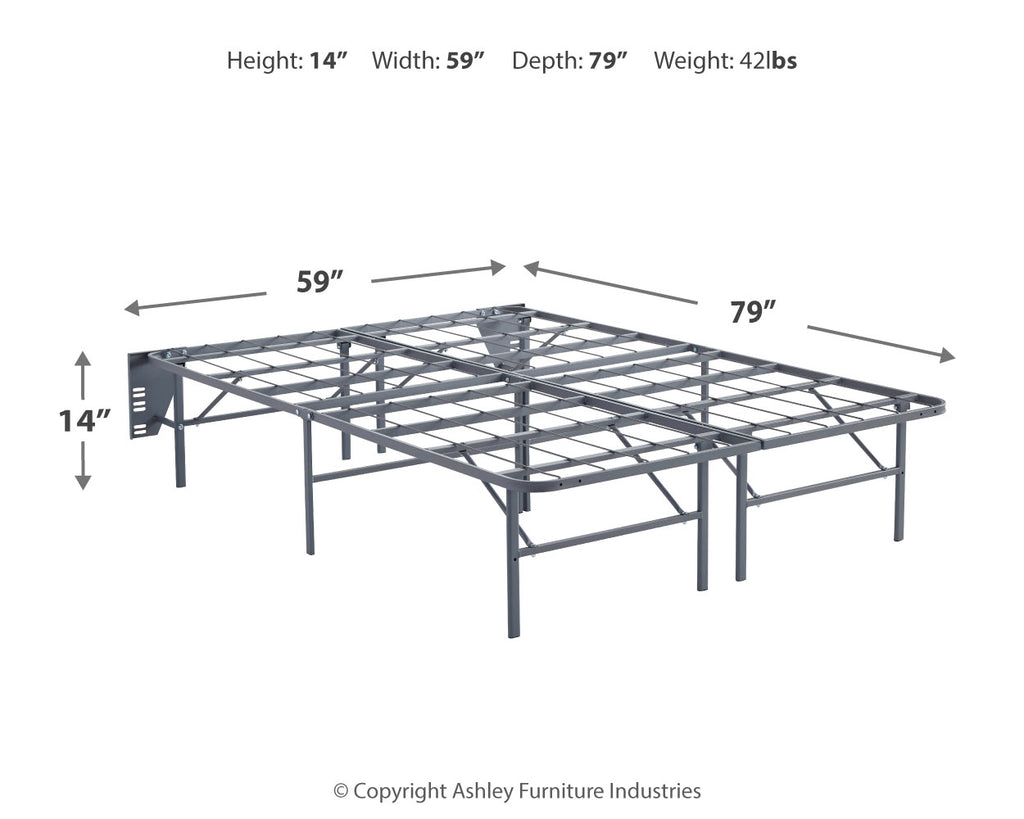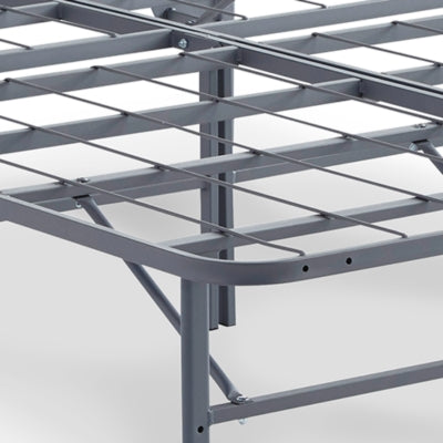 Behold the newest foundation of comfort. This queen mattress riser is an all-in-one support system that takes the place of an ordinary bed frame and box spring. The metal unit sets up quickly and without using any tools, creates a sleep haven with unwavering support. Included brackets attach the riser to a headboard. Even better: the clearance from frame to floor is incredibly spacious and ideal for under-bed storage.