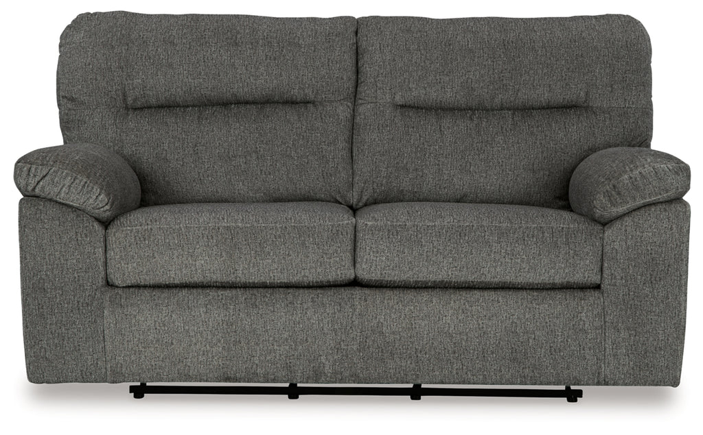 Make your living room the ultimate hangout with this glider loveseat. Its buttery soft upholstery encourages you to lounge a while longer. And when it’s time to hit a peak state of relaxation, indulge in the gentle sway of its gliding motion. Comfortable, casual and contemporary, this loveseat caters to the style you love and the function you crave.