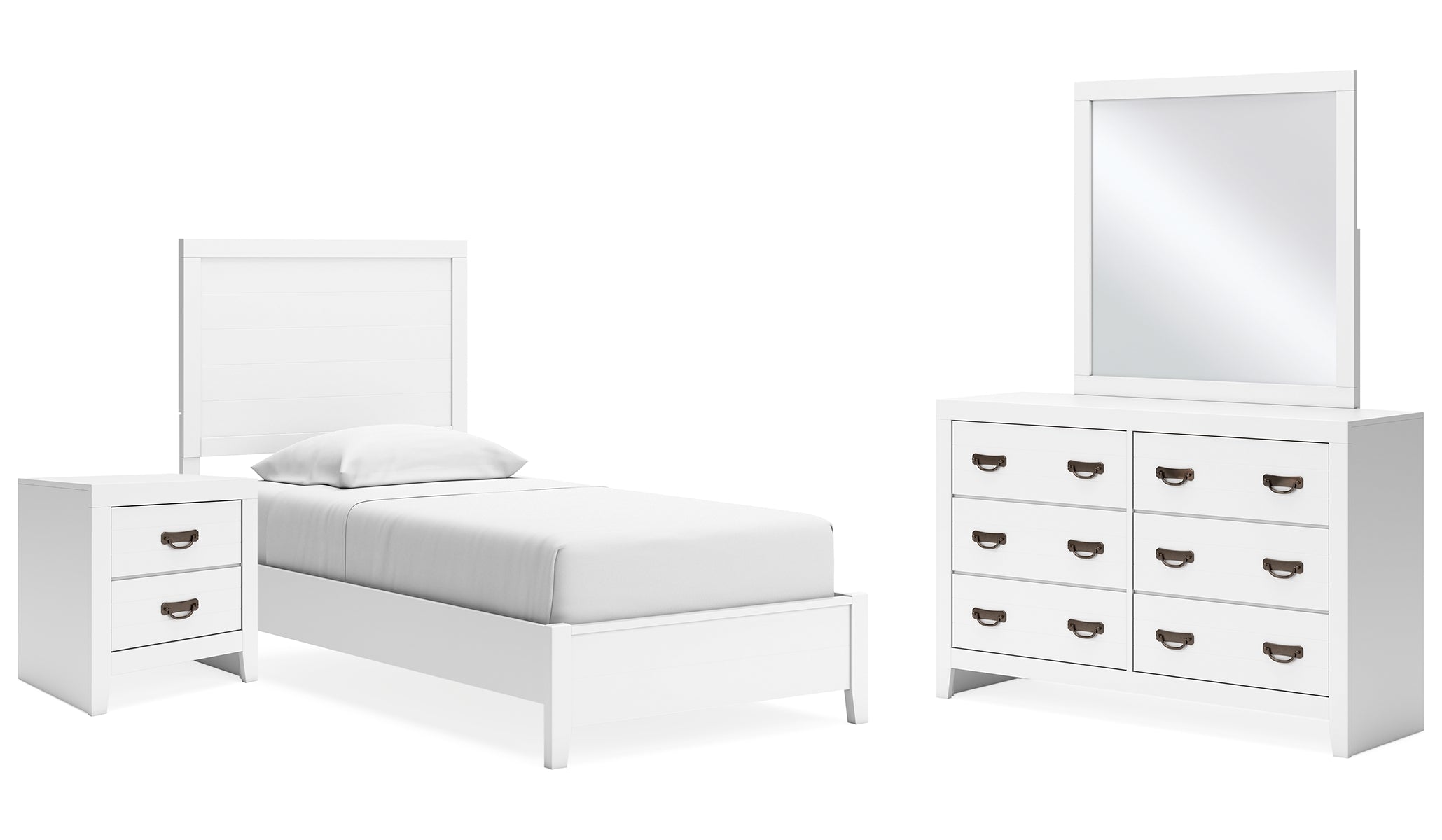 Binterglen Twin Panel Bed with Mirrored Dresser and Nightstand