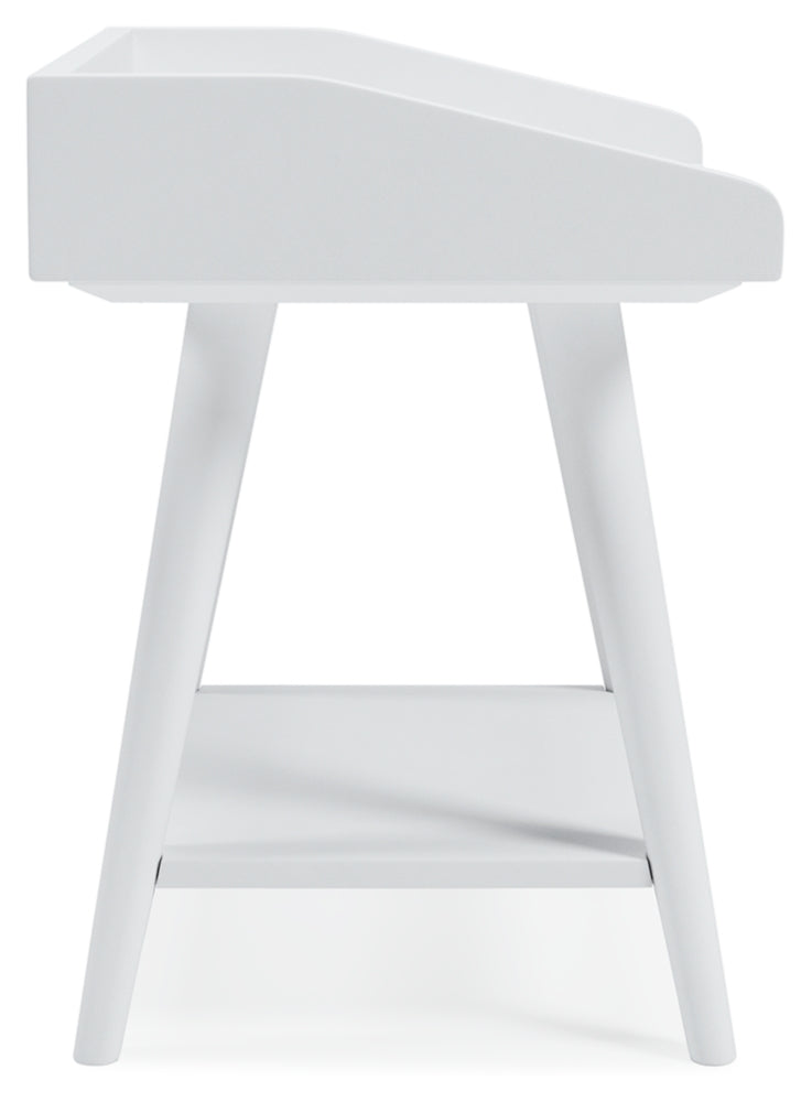 Display your decor with simple style on this accent table. Constructed of wood and engineered wood in a crisp, white finish, this table blends easily with your existing living room aesthetic or stands in as a kid's bedside table. A gallery rail top, undermount shelf and dual USB chargers keep your life (and your look) simply sensational.