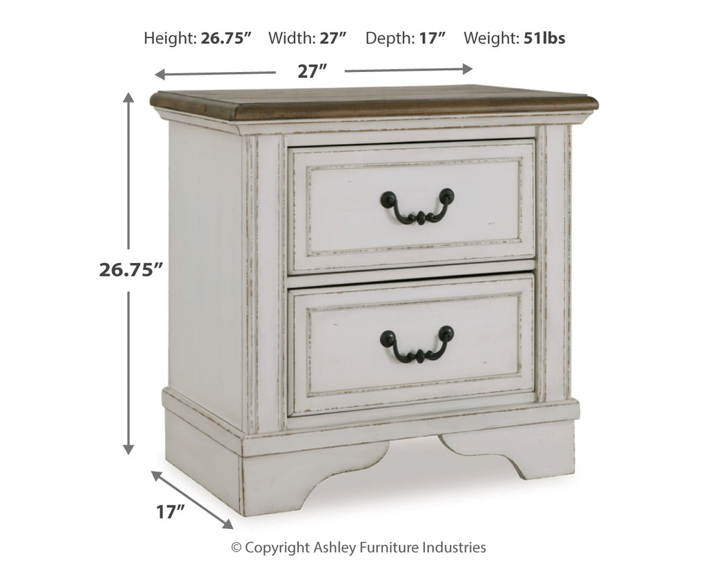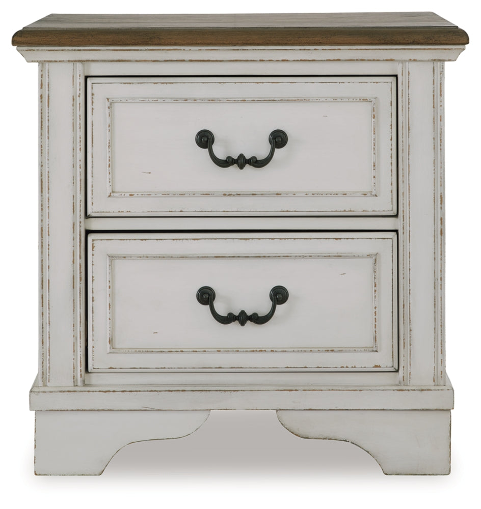 Traditional design. Casual appeal. You can have it all with this nightstand. A relaxed two-tone aesthetic merges with ornate profiled drawer fronts and pilasters to give the distinctive piece an allure all its own. Expansive drawers with quality dovetail construction and dark bronze-tone hardware reflect attention to detail from the inside out.