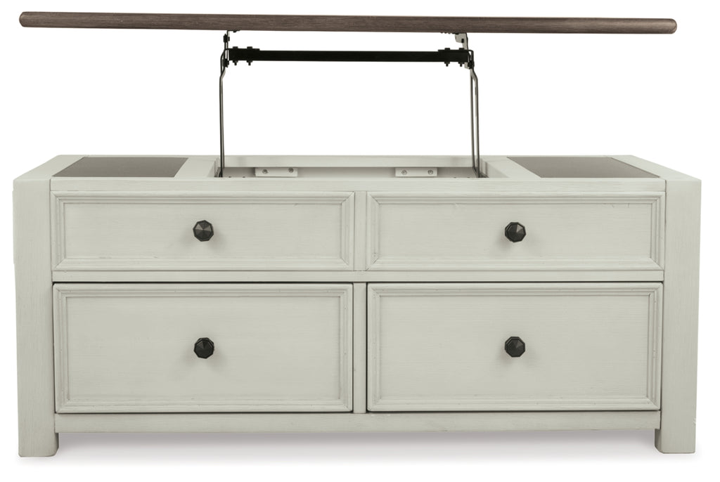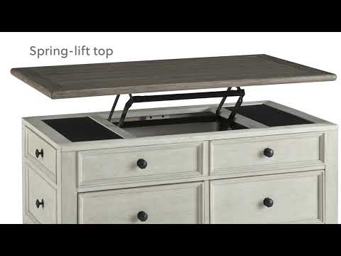 Store, serve and showcase your favorite things with this lift top coffee table. Its textured antique white finish creates a vintage two-tone look that will endure for years.