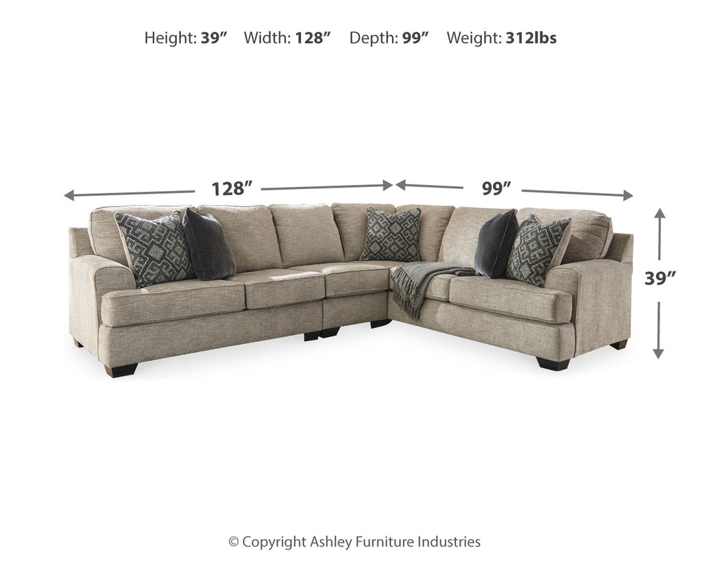 Whether your vision is clean and contemporary or cozy modern farmhouse, this sectional in a stone-tone neutral upholstery has the corner on style. Merging ultimate comfort with striking good looks, this chic sectional includes five coordinating accent pillows for that much more feel-good allure.