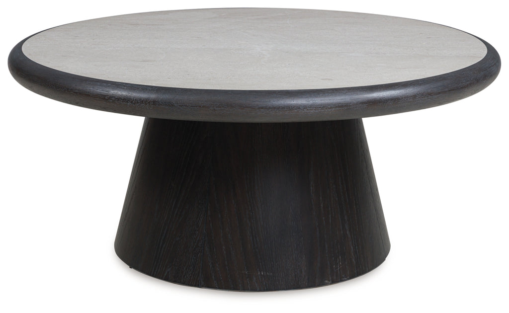 Rustic style. Refined design. This coffee table marries a substantial silhouette with natural materials. A glazed light finish enhances the unique character of its oak veneer. Loaded with both homespun charm and contemporary flair, this table effortlessly elevates casual aesthetics.
