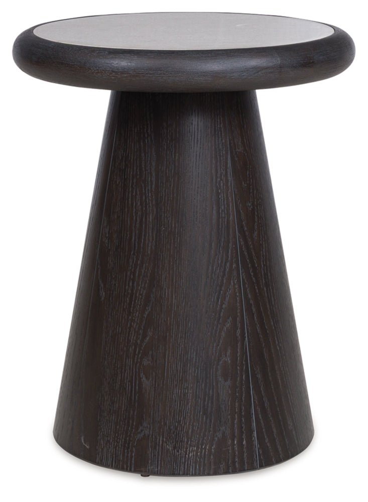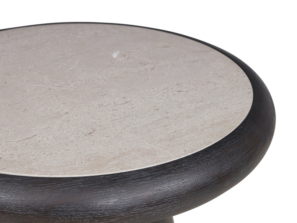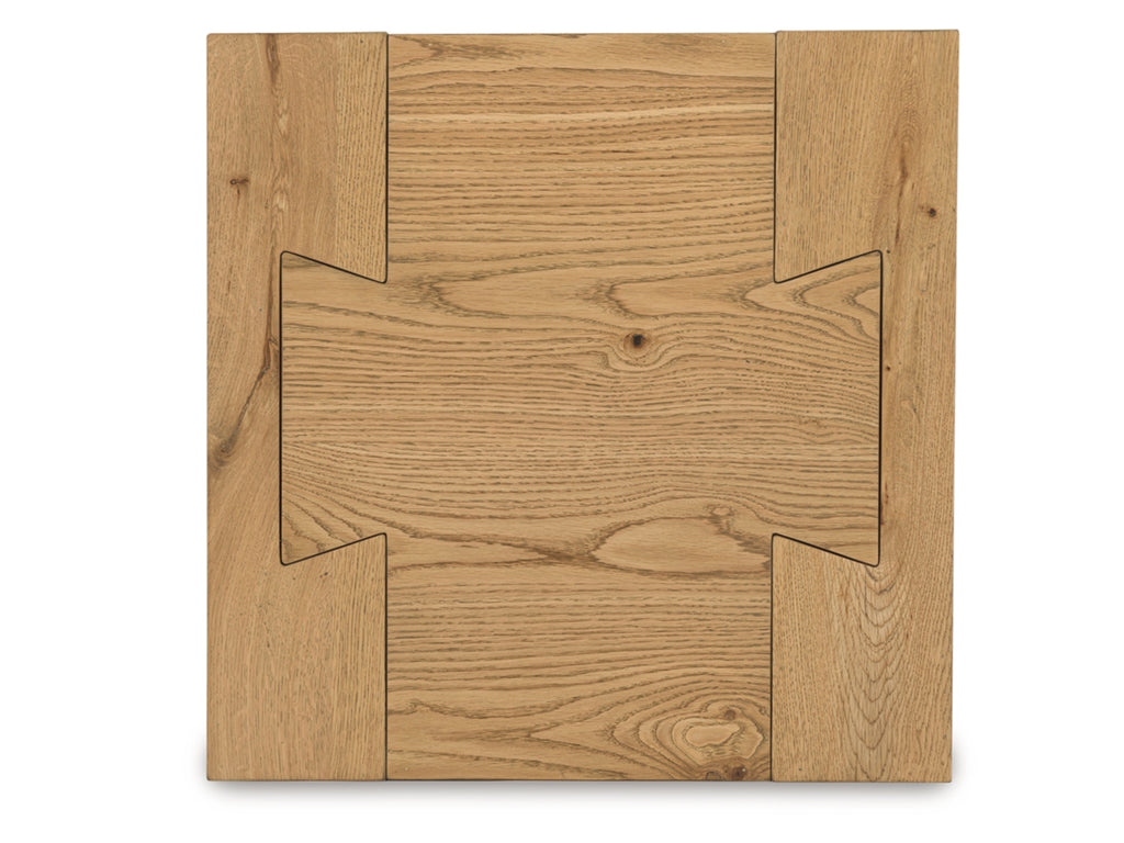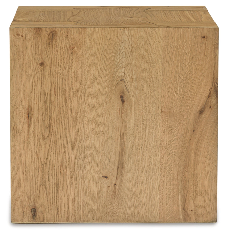 Rustic style. Refined design. This end table marries a substantial silhouette with natural materials. A glazed light finish enhances the unique character of its oak veneer. Loaded with both homespun charm and contemporary flair, this table effortlessly elevates casual aesthetics.