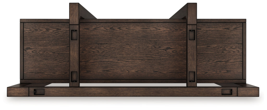 Classic meets contemporary in this home office bookcase. Its rich, dark wood tone and architectural character suit today’s trends while balancing a timeless appeal. And with a unique open shelf design that's perfect for storage and displaying decor, this bookcase gives your office a dose of both form and function.
