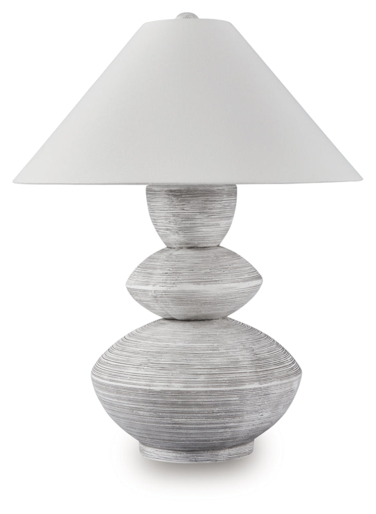 Inspired by a classic pottery form, this triple gourd table lamp lightens the mood with a sense of ease and organic style. A distressed white finish adds a layer of interest to the base. Use it in pairs for double the impact in a bedroom, living area or entryway.