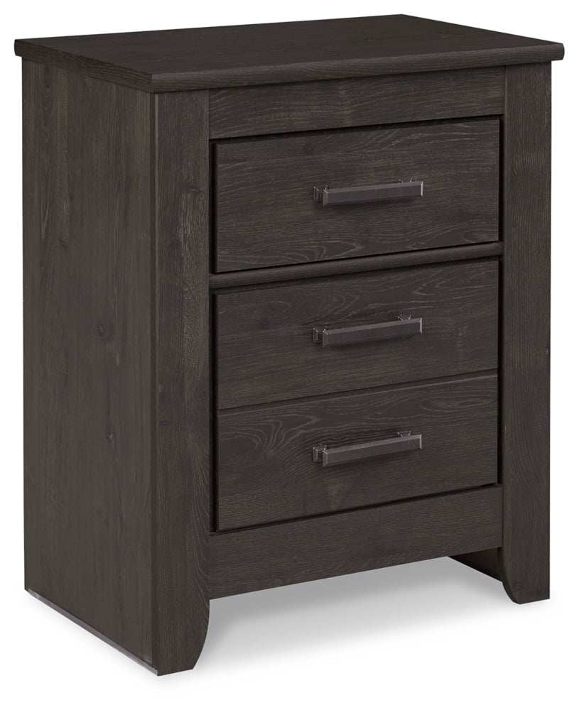 Priced to entice and styled to impress, this alluring nightstand is urban sophistication with a decidedly relaxed air. It’s got the crisp, clean lines of a contemporary piece, but with an earthy element. Replicated oak grain effect gives the chic charcoal finish warmth and character. Linear pulls are a sleek touch.