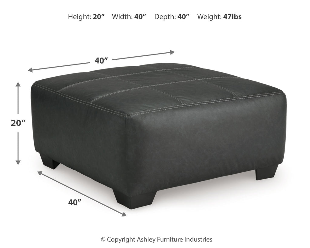 Appeal to your eye for ultra-contemporary design with this oversized accent ottoman. Chic and sleek in dark neutrals, it pairs cozy fabric with faux leather for invitingly cool character. And with its robust size offering extra legroom, you can chill out in comfort and style.