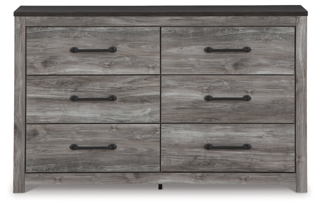 Alluring smoky gray hues create an ambiance that just feels right. This 6-drawer dresser and mirror set has a charming wood-like appeal enriched by a two-tone, textured look. Light neutral shades contrasted by a dark charcoal finish bring a refined yet relaxed feel to contemporary decor and a sense of serenity to your space.