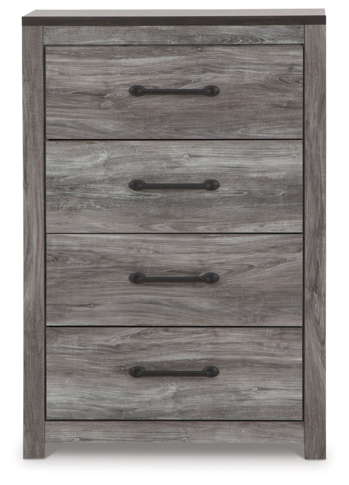 Alluring smoky gray hues create an ambiance that just feels right. This bedroom package has a charming wood-like appeal enriched by a two-tone, textured look. Light neutral shades contrasted by a dark charcoal finish bring a refined yet relaxed feel to contemporary decor and a sense of serenity to your space.