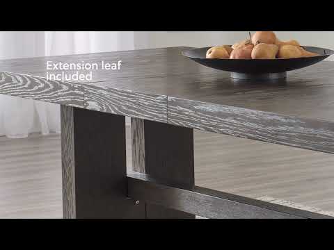 Dressed to thrill, this dining ensemble offers a high-design look at a down-to-earth price. Ultra-sleek lines are accentuated with a dark waxy brown oak-tone finish that’s so easy on the eyes. Clean-lined and modern, this set showcases quality craftsmanship and attention to detail for a look that's made to last.