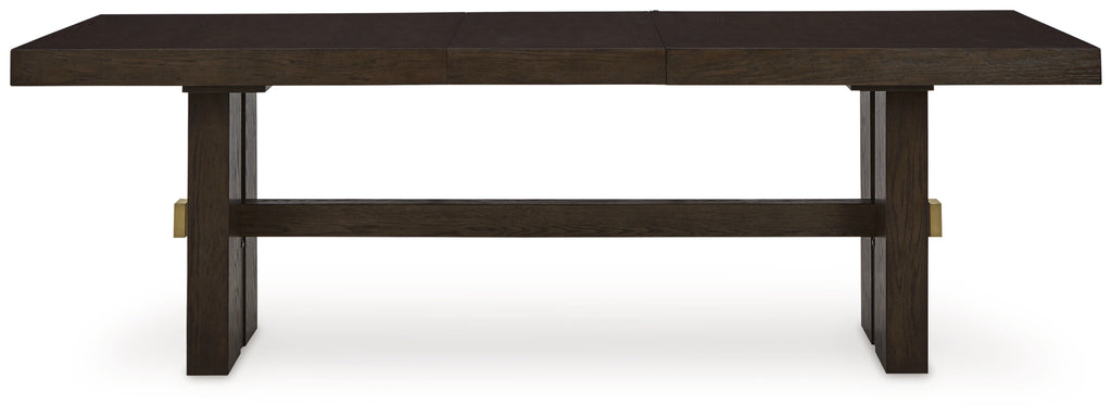 Dressed to thrill, this simply stunning dining package offers a high-design look at a down-to-earth price. Ultra-sleek lines are accentuated with a dark waxy brown oak-tone finish that’s so easy on the eyes. Whether you're hosting family meals or holiday entertaining, this set has a timeless look that’s made to last.