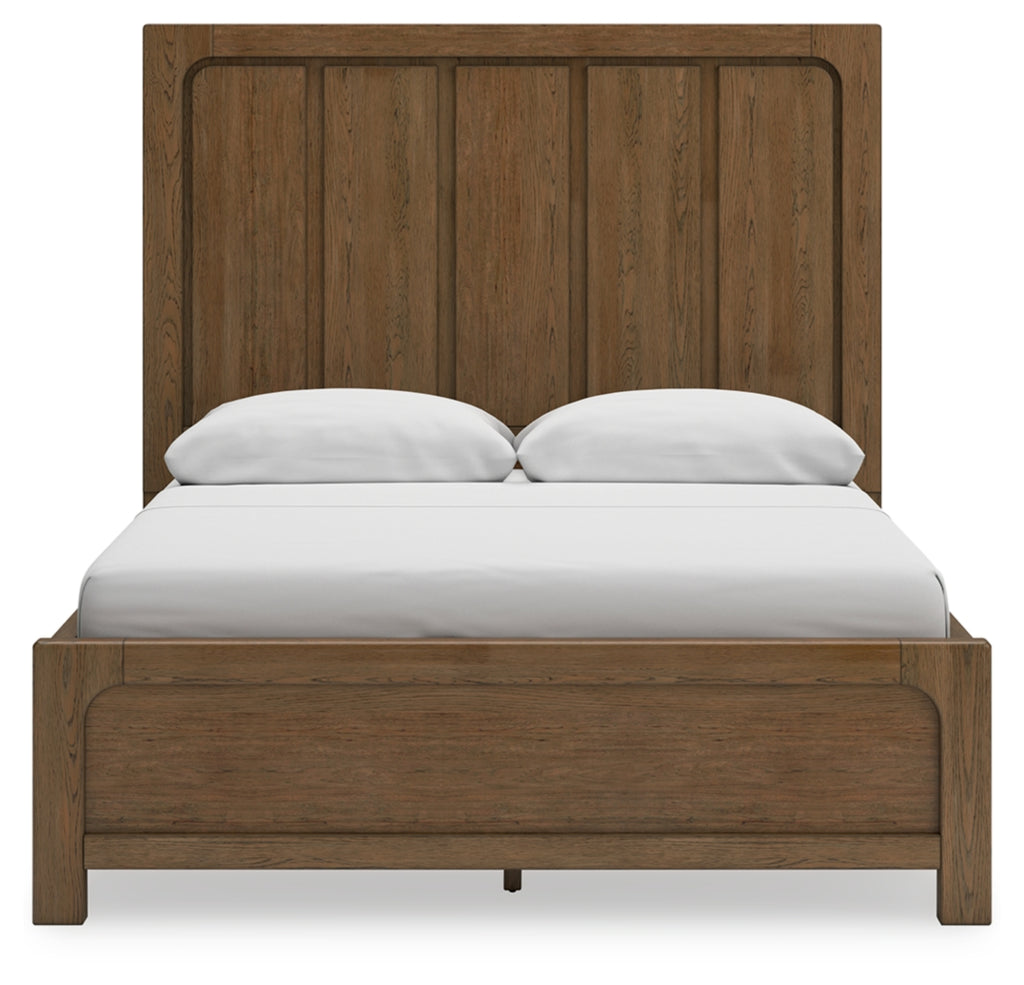 This California king panel bed with storage sits comfortably at the intersection of modern lodge and farmhouse aesthetics. Your warm and welcoming disposition is reflected in its charming architectural elements and light brown glazed finish. Even with its poise, this bed remains practical. Storage drawers are effective space-savers, defining your bedroom with reliable function and style.