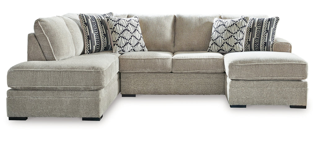 • Includes 2 pieces: left-arm facing corner chaise and right-arm facing sofa chaise