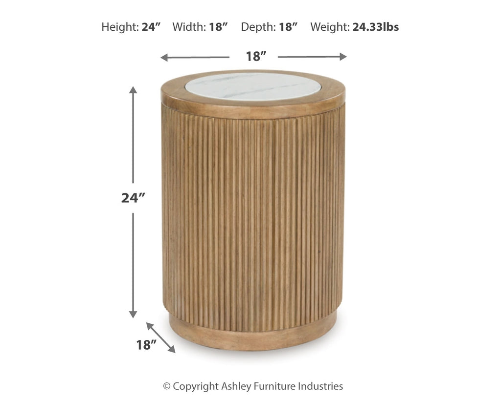 Elegance meets earthy charm in this end table. Crafting a contemporary living room? The faux Carrara marble top expertly pairs with the reeded base for a trend-right take on day-to-day function. It’s an ideal spot to rest remotes, a drink or small decorative accents.