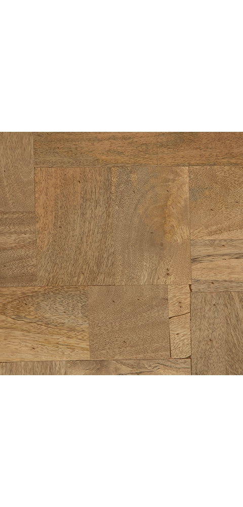 With its clean lines and sense of simplicity, this console table is a master study in modern style. We love how the contrasting patchwork patterned post and the dark brown finish captivate the eye. The lower shelf enhances the open and airy design and provides great display space.