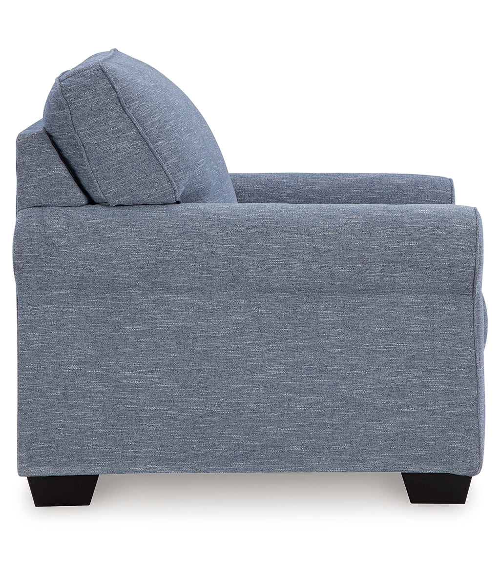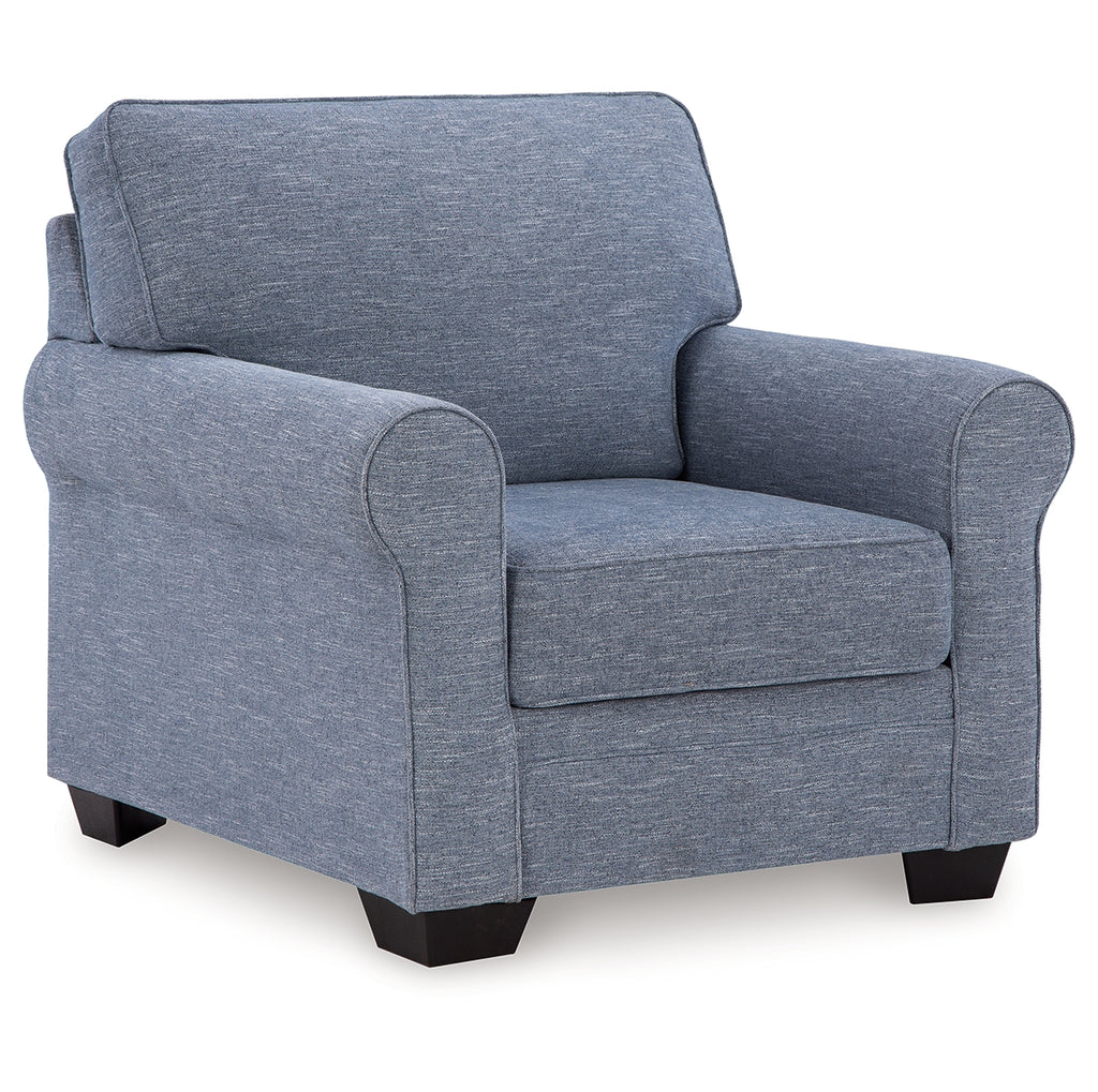 This chair is defined by comfort, convenience and classic style. Soft to the touch and stain-resistant, the family-friendly Next-Gen Nuvella™ fabric is easy to maintain. And you'll love the universal appeal of its denim-inspired hue. With roll arms adding a dash of traditional flair, the chair is a simply chic approach to everyday relaxation.