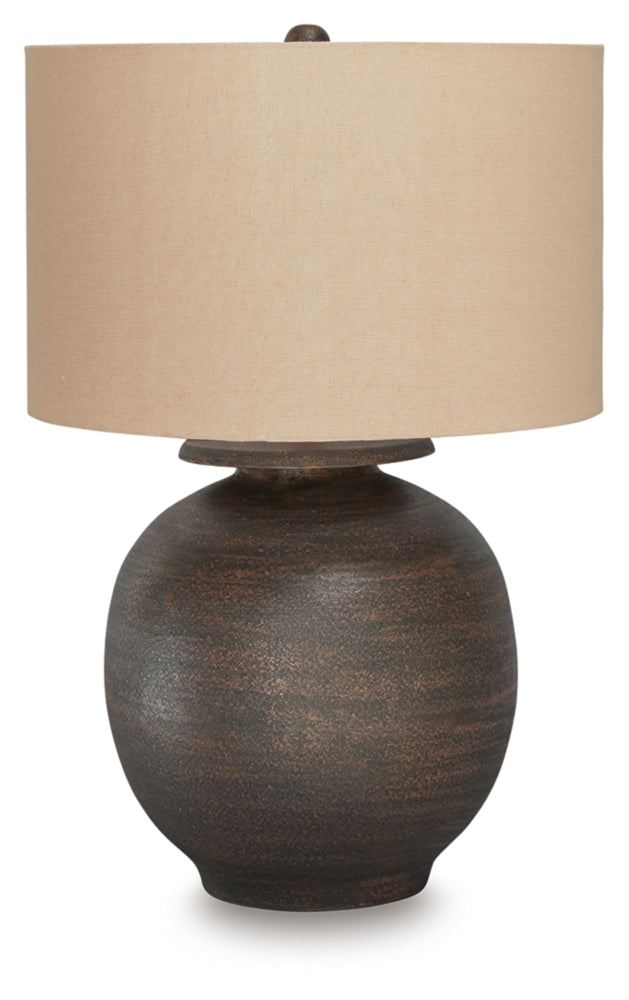 Brighten up your space with the casual, earthy elegance of this lamp. Outfitted in an antiqued brown hue, its simple curved form ushers in an air of effortless beauty when placed on an accent table or desk.