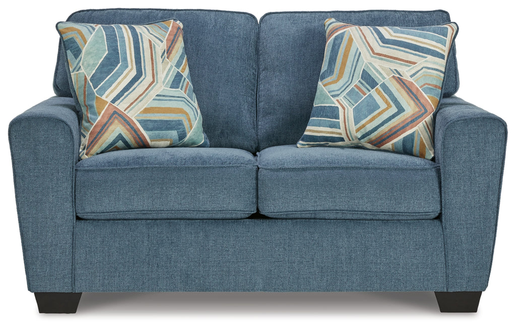 Need a simple style refresh? Liven up your living room essentials with this loveseat. A chunky silhouette holds invitingly ample cushioning you'll long to lounge in. Crosshatched upholstery and accent pillows give the otherwise casual design a delightful visual texture that's perfect for settings from classic to contemporary.