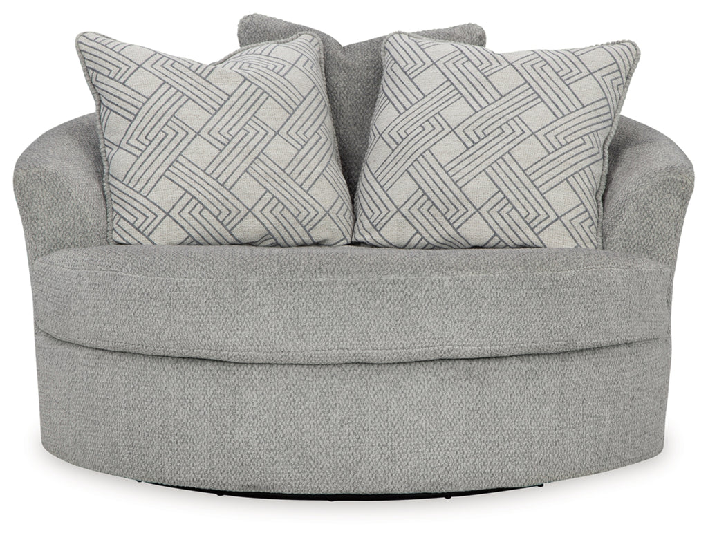 Don’t be limited by a lack of space. This oversized swivel accent chair makes family movie nights and get-togethers with friends all the more cozy. With its 360-degree swivel, it’s easy to switch from watching TV to talking to guests. A trendy gray hue offers the contemporary style you crave. So sit back and relax—this functional piece is ready to indulge you with everyday comfort.
